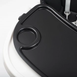 Siguranța este asigurată de centura ajustabilă în 5 puncte, în timp ce varietatea reglajelor permite găsirea poziției ideale atât pentru masă, cât și pentru odihnă. Măsuța dublă, detașabilă, facilitează servirea și întreținerea; înălțimea scăunelului se poate regla în 5 trepte, iar suportul pentru picioare în 3 trepte.