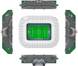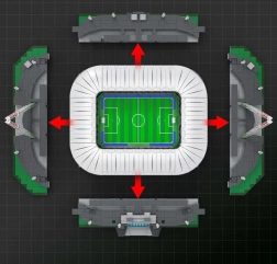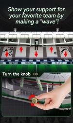 Modelul este împărțit în șase module (teren, patru tribune și acoperiș), astfel încât îl poți demonta ușor pentru a explora interiorul. Funcția unică de „val” îți permite, cu un comutator rotativ, să miști scaunele în sus și în jos – exact ca pe un stadion real. Datorită designului bine gândit și structurii solide, este ideal pentru construcție, expunere și colecționari.
