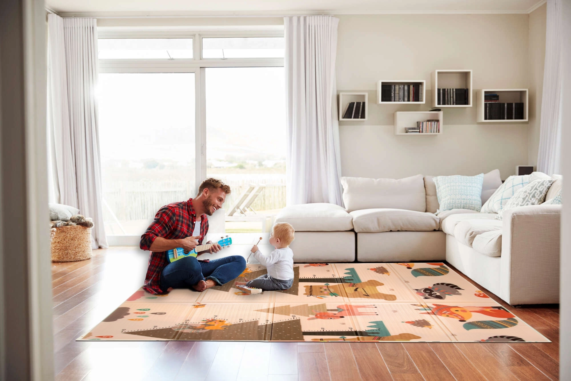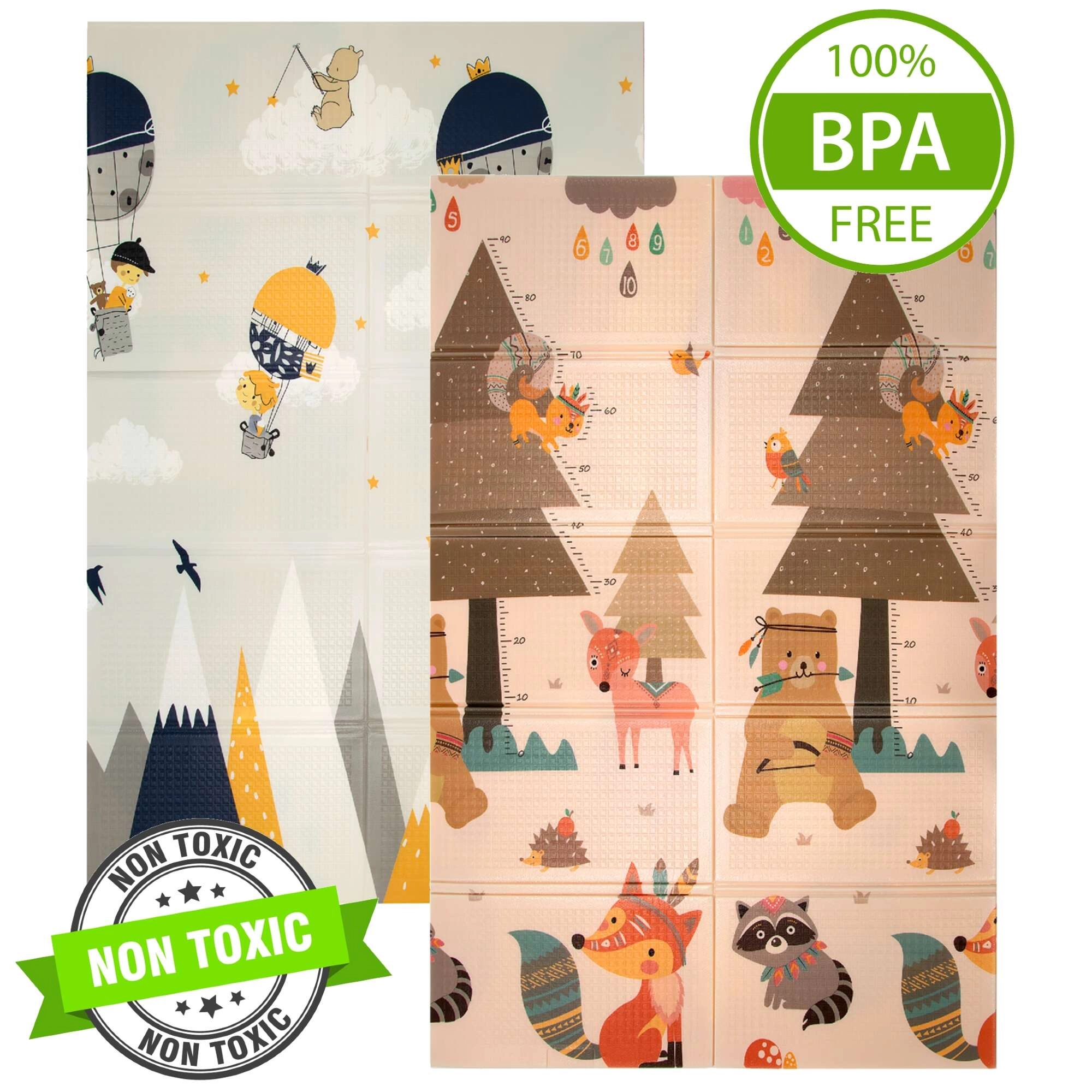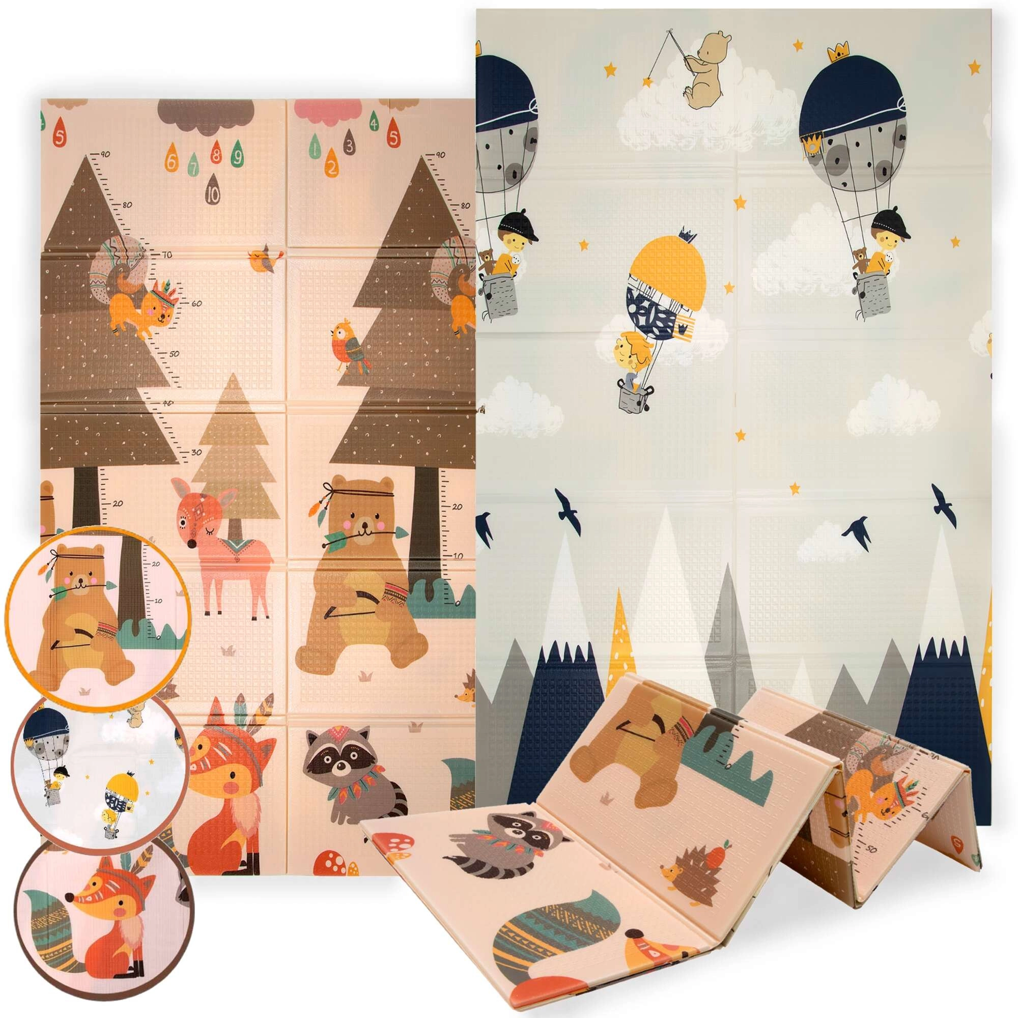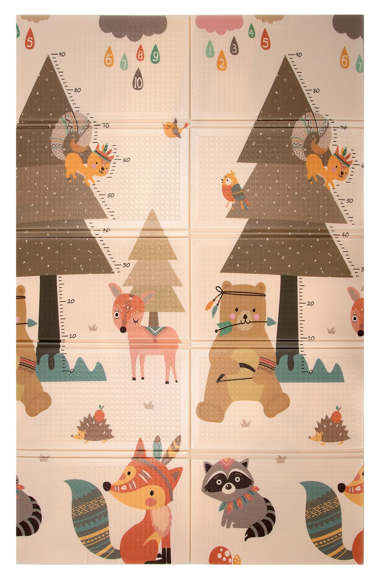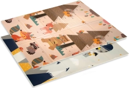 Covorașul HUMBI din spumă XPE premium oferă amortizare excelentă, izolație termică față de podeaua rece și o suprafață antiderapantă, ușor reliefată, pentru târât în siguranță și primii pași. Este reversibil – pe o parte drăgălașe animale de pădure, pe cealaltă parte motiv de munți și aventură – astfel încât îl armonizezi ușor cu interiorul și cu dispoziția copilului.