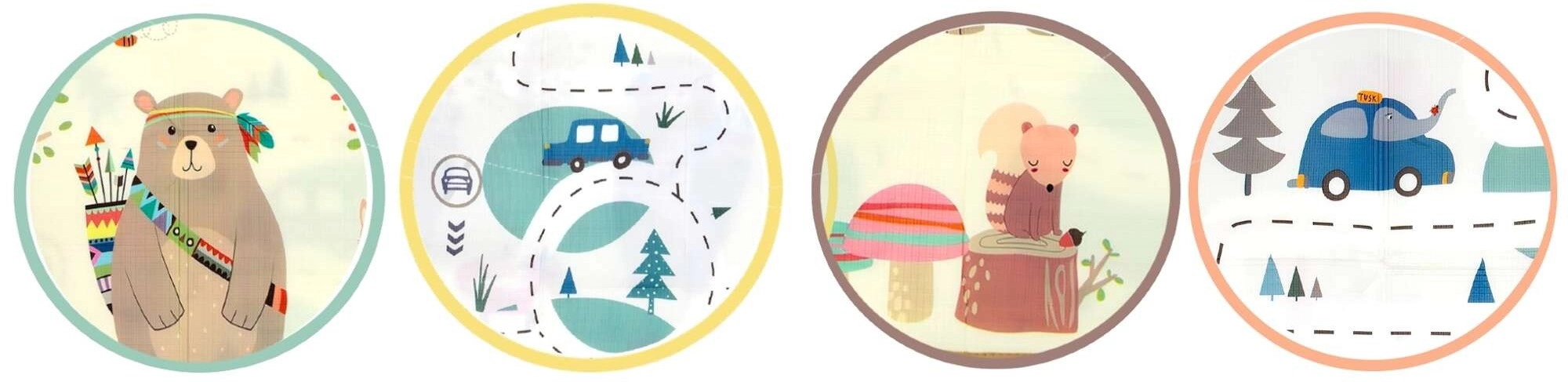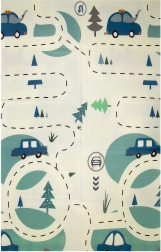 O față cu animăluțe adorabile pentru camera copilului, cealaltă cu șosea și mașinuțe pentru jocuri cu mașini. Se potrivește ușor cu interiorul și starea de spirit a copilului.