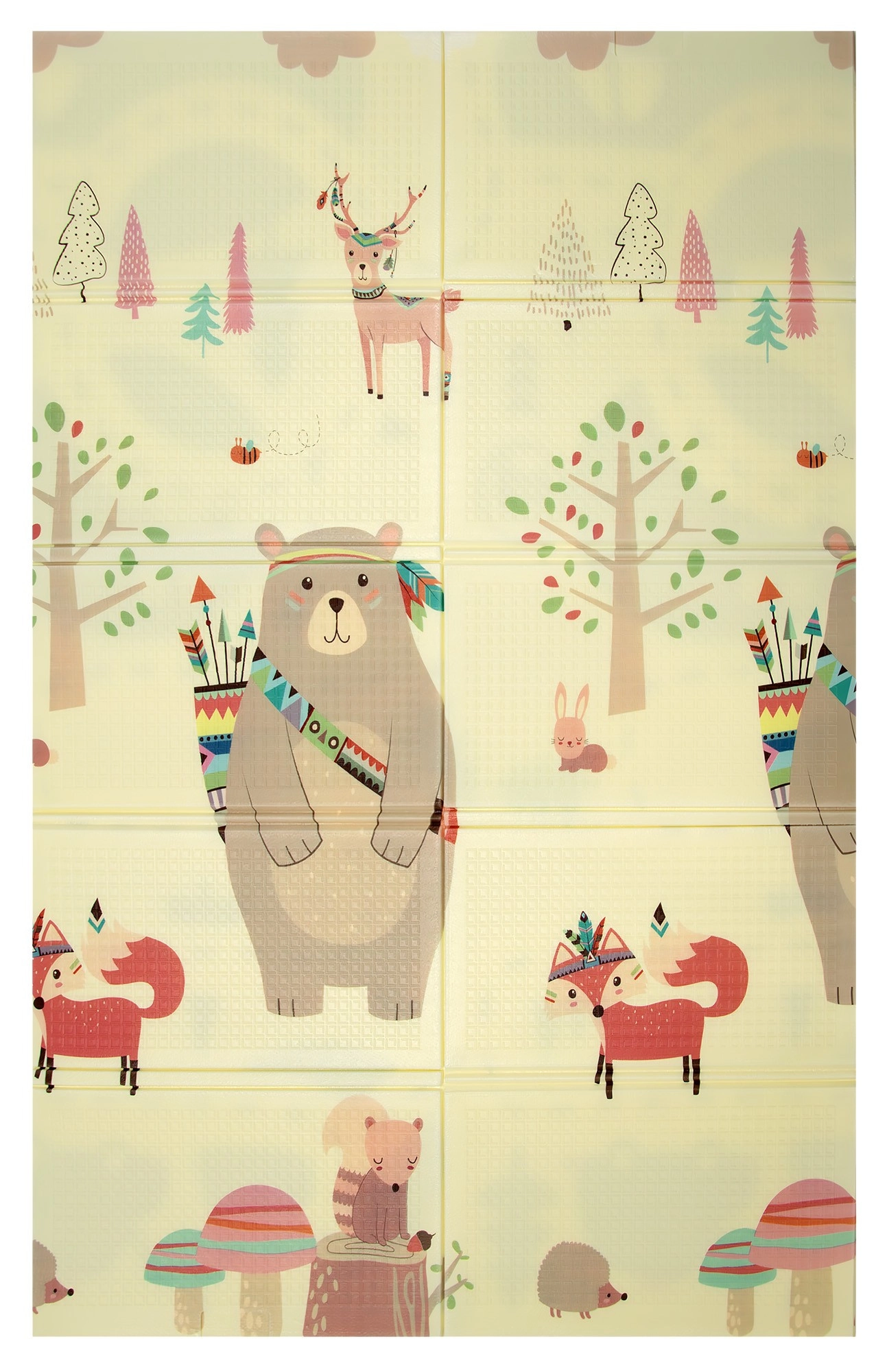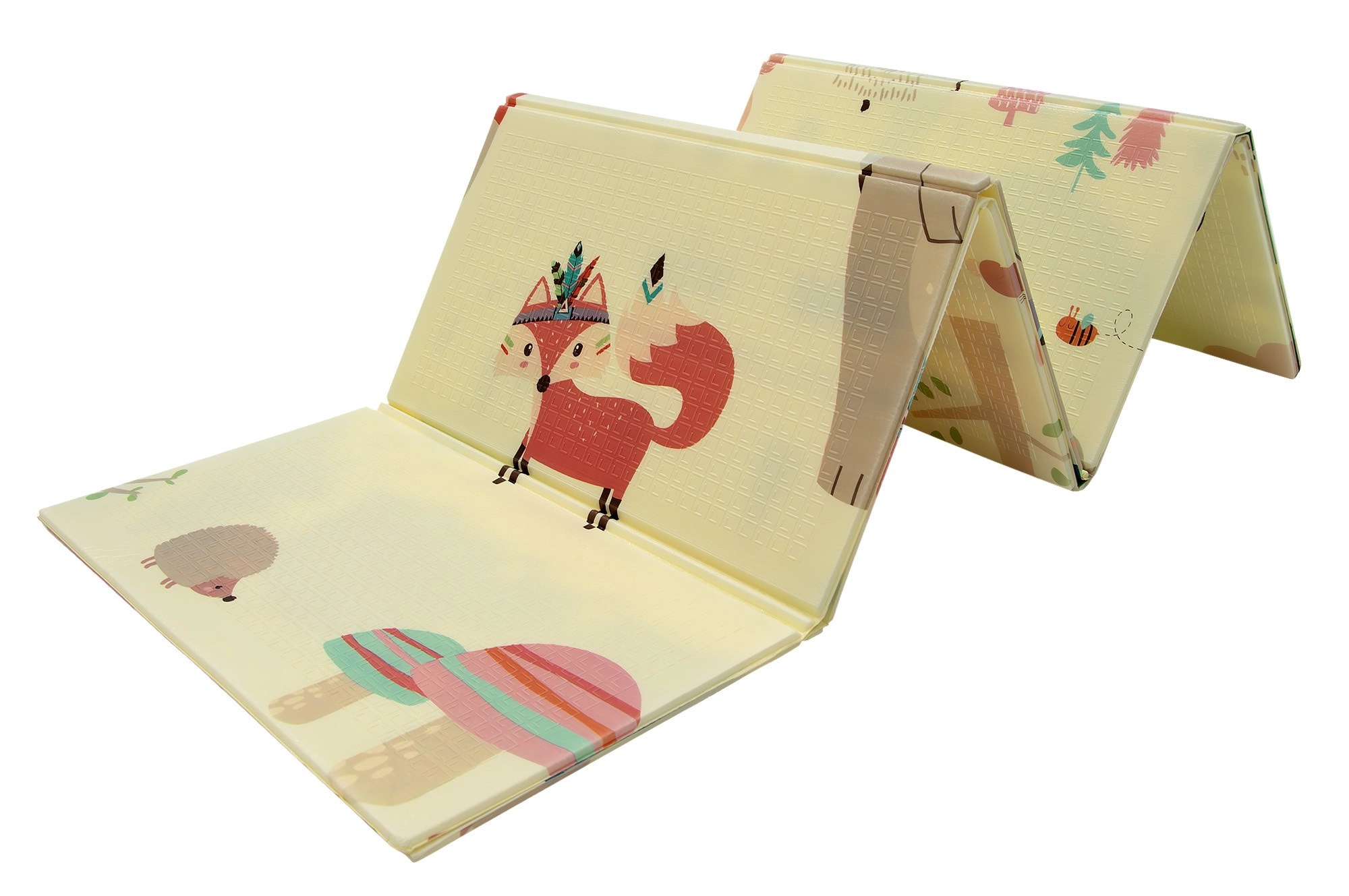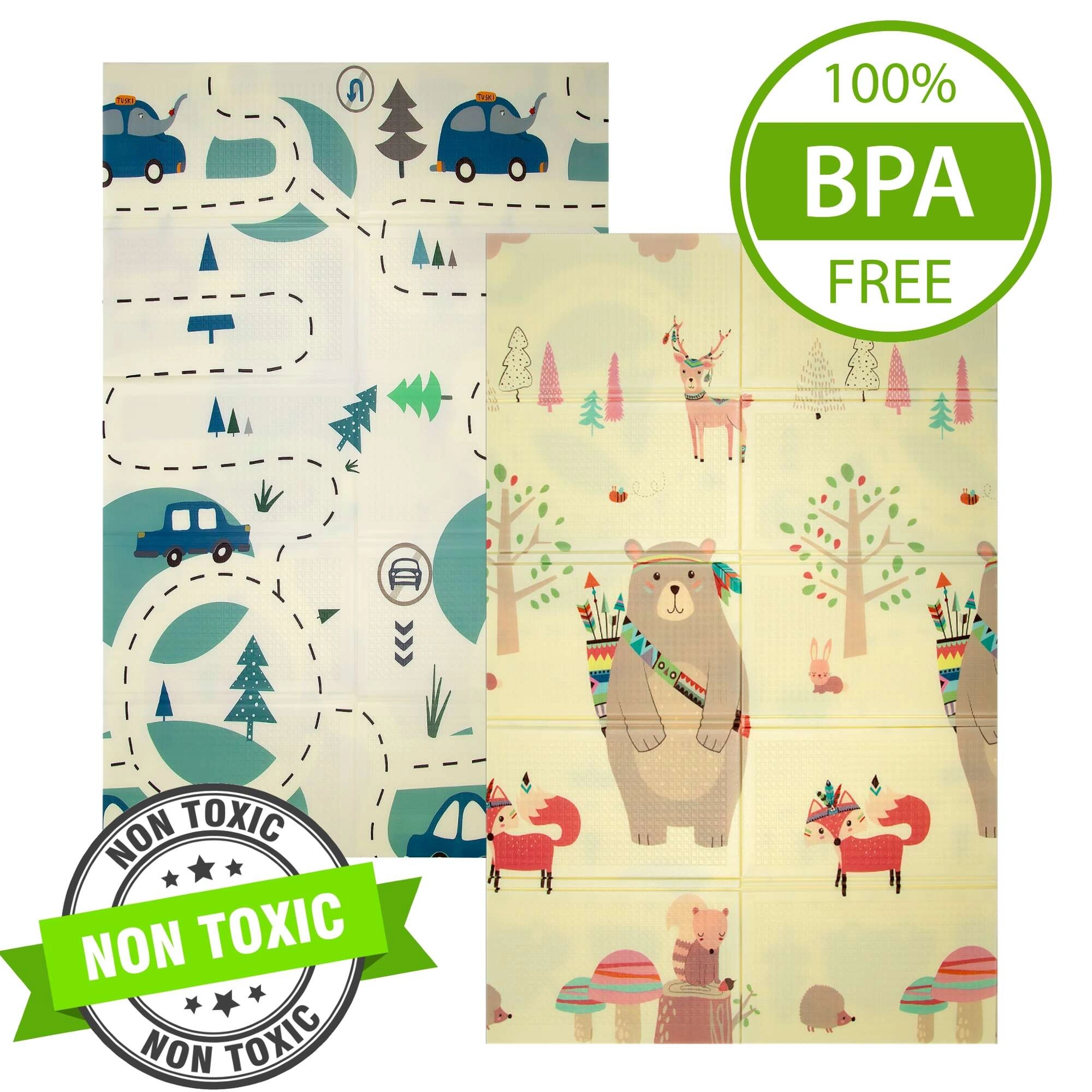 Covorașul HUMBI oferă copiilor un loc moale și sigur pentru joacă, odihnă și dezvoltarea motricității. Spuma XPE de calitate este fermă, absoarbe șocurile și în același timp izolează foarte bine de frigul podelei. Designul cu două fețe oferă pe o parte adorabile motive din pădure (urși, vulpi, arici), iar pe cealaltă parte o șosea cu mașinuțe pentru joacă distractivă și explorare senzorială.