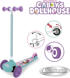 Trotineta pentru copii cu trei roți SMOBY cu motivul Gabby’s Dollhouse (Căsuța lui Gabi) este ideală pentru micii rideri de la 3 ani. Datorită celor două roți din față, direcției de echilibru și frânei de picior, oferă stabilitate sporită, o călătorie mai sigură și control ușor. Construcția ușoară și roțile silențioase asigură o plimbare confortabilă și distractivă atât în interior, cât și afară.