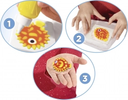 După introducerea în soluția pregătită, motivul plat se transformă într-o figurină 3D moale, cu culori frumoase – gata de joacă și expus.