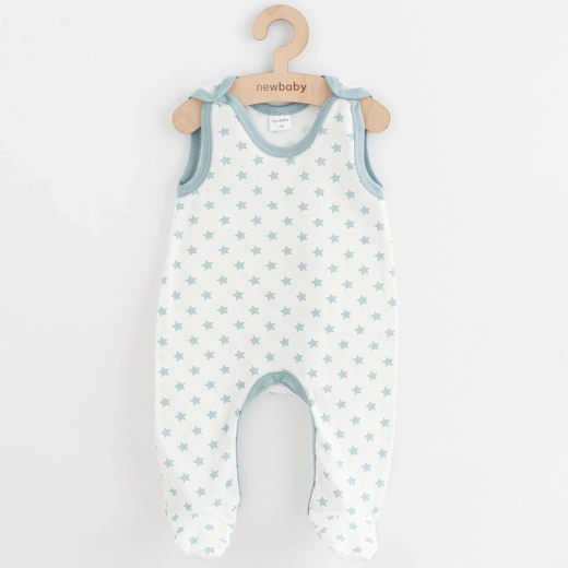 Salopetele pentru bebeluși New Baby Classic II, în culoare mentă cu steluțe, îmbină confortul, calitatea și un design adorabil. Datorită tricotului din bumbac moale, bebelușul se va simți plăcut pe tot parcursul zilei și nopții. Croiala simplă cu închidere practică este excelentă pentru manevrare ușoară la îmbrăcare și schimbare.
