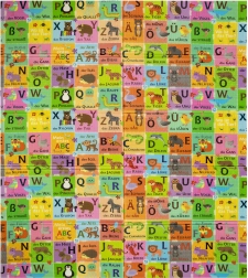 O față prezintă alfabetul german cu animăluțe, cealaltă aduce o scenă jucăușă de la țară. Distracție și învățare într-un singur produs.