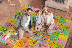Saltea mare, moale și cu două fețe din spumă XPE, care oferă copiilor confort și siguranță la joacă, târâre și primii pași. Este pliabilă, rezistentă la apă, ușor de curățat și, datorită genții de transport incluse, o poți lua oriunde – în camera copilului, în living sau în grădină. Respectă standardele europene de siguranță și nu conține substanțe nocive.