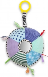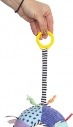 Jucăria dezvoltă văzul, auzul și simțul tactil prin texturi variate ale materialelor, panglici și o zornăitoare sigură. De asemenea, susține prinderea și coordonarea mână–ochi, ideală pentru cei mai mici încă de la naștere.