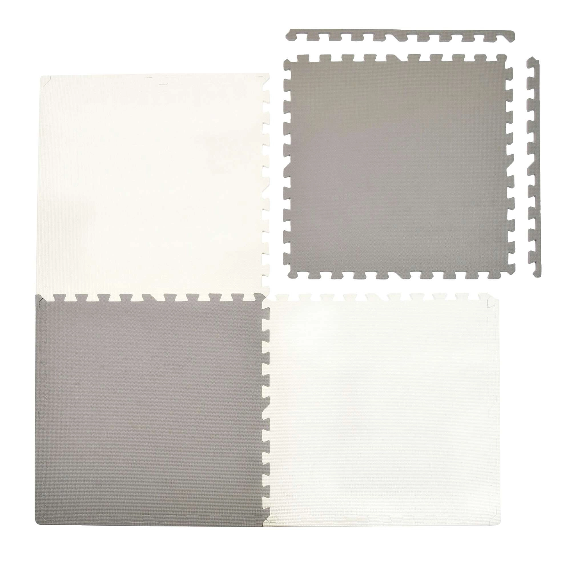 Eleganta saltea din spumă HUMBI, în carouri neutre gri-alb, se potrivește atât în camera copilului, cât și în living. Asigură confort și siguranță la joacă, este fără ftalați, formamidă, BPA și PVC și respectă EN 71 și REACH. Datorită sistemului puzzle, poți adapta forma și dimensiunea suprafeței, iar benzile de margine oferă un finisaj curat.