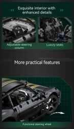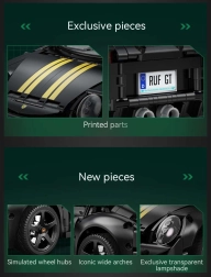 Setul CaDA din seria „Make Your Bricks Move” va încânta fanii exigenți ai modelelor tehnice. Modelul realizat cu precizie RUF GT îmbină funcțiile realiste cu un design atrăgător: elemente deschizabile, direcție, suspensie și interior detaliat. La scara 1:10 se remarcă atât ca piesă de colecție, cât și ca model dinamic pentru joacă.