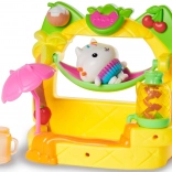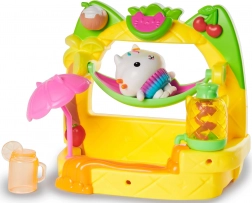 - Conținutul pachetului: figurină Cakey, cadru de balcon cu hamac, stand de fructe în formă de ananas, pahar, umbrelă, fructe/accesorii, cutiuță secretă.