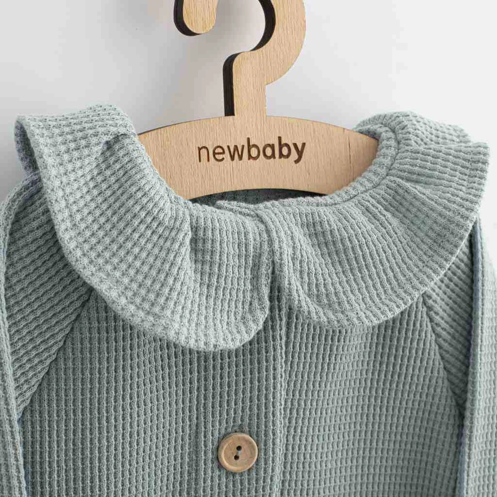 Elegantă jachetiță/cardigan pentru bebeluși New Baby Laura, în culoare gri universală, creată atât pentru purtare zilnică, cât și pentru momente festive. Are închidere practică cu nasturi, guler delicat și nasturi din lemn, care îi conferă un aspect elegant. Confectionată din 100% bumbac pentru finețe, respirabilitate și confort pe tot parcursul anului.