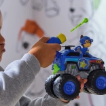 Vehiculul off-road al lui Chase este pregătit pentru orice aventură. Datorită roților mari, care se rotesc liber, face față și conducerii „off-road” prin camera copilului, iar lansatorul cu cârlig asigură acțiuni de salvare pline de suspans. Figurina Chase cu cască stă chiar la volan și inspiră povești din universul PAW PATROL.