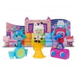 Sunt incluse decorul pliabil al scenei, figurinele eroilor, tobe, trompetă, boombox, microfoane și alte recuzite. Nu lipsește nici surpriza din cutiuța adorabilă, care aduce un nou impuls jocului. Setul este ideal pentru joacă individuală sau ca accesoriu pentru alte căsuțe și seturi GABBY'S DOLLHOUSE.