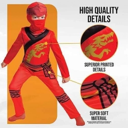 Costum original inspirat de popularul serial NINJAGO și de jucăriile LEGO, care va încânta toți iubitorii de aventuri pline de acțiune. Datorită detaliilor atent lucrate și croielii confortabile, copiii se vor transpune ușor în rolul curajosului Kai.