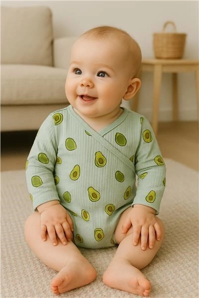 Bodyul în stil kimono din muselină NEW BABY Avocado este ideal pentru purtare zilnică – materialul fin țesut și respirabil „respiră” natural și ajută la reglarea temperaturii, reducând riscul de supraîncălzire. Imprimeul integral cu avocado oferă un aspect vesel, iar muselina de calitate din bumbac 100% va fi îndrăgită atât de copii, cât și de părinți.