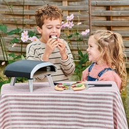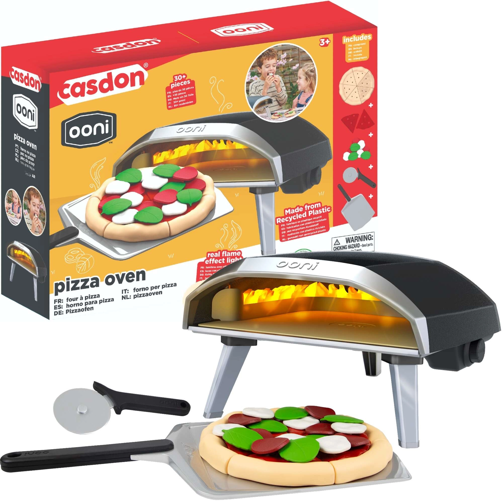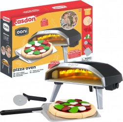 Un cuptor de pizza pentru copii stilat, în design modern negru–argintiu, aduce experiența autentică a preparării pizzei direct pe masă. Copiii asamblează pizza din 6 piese de aluat și „sos”, o decorează cu 18 accesorii și, cu ajutorul lopăței, o introduc în cuptor. Fiecare piesă se fixează datorită îmbinărilor practice, astfel încât manipularea este comodă, iar joaca curge natural.