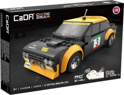 Trăiește o experiență dinamică la volanul modelului detaliat FIAT ABARTH 131 la scara 1:20. Mașina are vopsea de curse negru‑galben cu inscripții, aripi late, antenă și cockpit realist. Datorită roților din cauciuc, rulează lin pe diverse suprafețe și atinge viteze de până la 3,8 km/h.