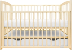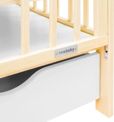 Pătuțul pentru copii New Baby Lilly, în finisaj natural, combină design modern, funcții bine gândite și materiale de calitate. Laterala culisantă permite manevrarea comodă cu o singură mână, iar somiera cu 3 niveluri de înălțime crește odată cu bebelușul. Somiera ventilată susține circulația aerului și ajută la menținerea saltelei uscate și igienice.