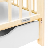 Sertarul integrat nu atinge podeaua, se glisează silențios și oferă suficient spațiu pentru scutece, lenjerie și jucării.