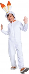 Acest combinezon alb integral cu glugă este inspirat de personajul Scorbunny din universul POKEMON. Datorită poliesterului moale, închiderii practice în față și detaliilor precum urechile lungi și coada, costumul este ideal pentru carnaval, serbări școlare și joaca zilnică acasă.