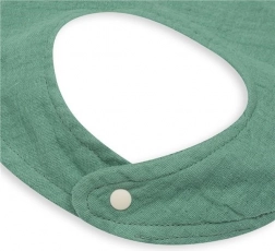 Baveta practică și stilată din muselină New Baby, în culoare verde, protejează hainele bebelușului în timpul erupției dinților și al hrănirii. Este fabricată din 100% bumbac organic, care este moale, delicat și respirabil pentru pielea sensibilă a copiilor. Se potrivește perfect cu alte produse din muselină și este ideală ca cadou pentru nou-născut.
