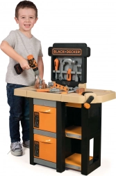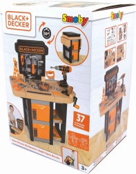 Bancul de lucru pentru copii Smoby BLACK+DECKER Bricolo, cu în total 37 de accesorii, îi va încânta pe toți micii meșteri. Masa de lucru stabilă, cu sertare și suporturi pentru unelte, include replici fidele ale sculelor BLACK+DECKER – o bormașină mecanică, ciocan, ferăstrău, șurubelniță, cheie, clește și menghină. Construcția sigură, fără margini ascuțite, dezvoltă motricitatea fină, creativitatea și jocul de rol.
