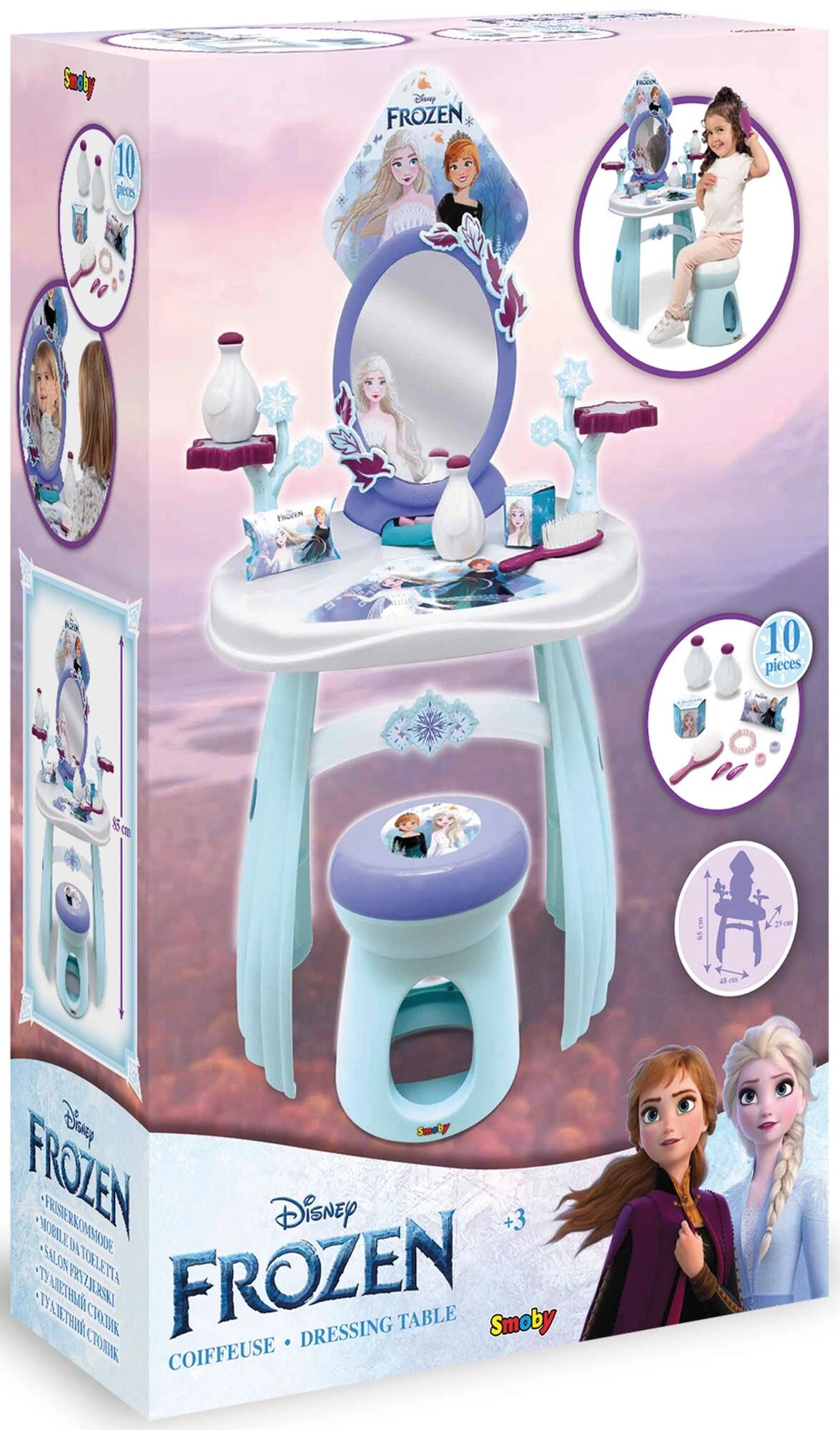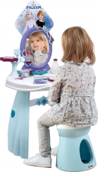 Măsuța de toaletă inspirată din lumea FROZEN va încânta toate micile prințese. Construcția stabilă din plastic, marginile netede și oglinda sigură susțin joaca în siguranță, în timp ce scăunelul practic permite o ședere confortabilă la pieptănat și decorat. Pe blat găsești spații de depozitare și suporturi pentru accesorii, astfel încât totul să fie la îndemână.
