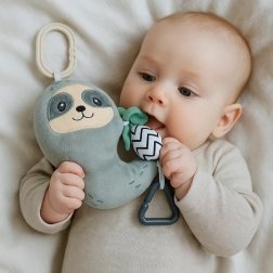 Zornăitoarele integrate dezvoltă percepția auditivă și susțin interacțiunea. Jucăria este fabricată din materiale de calitate și sigure, potrivite pentru bebeluși, și se curăță ușor. Perfectă ca accesoriu pentru cărucior, scaun auto sau pătuț.