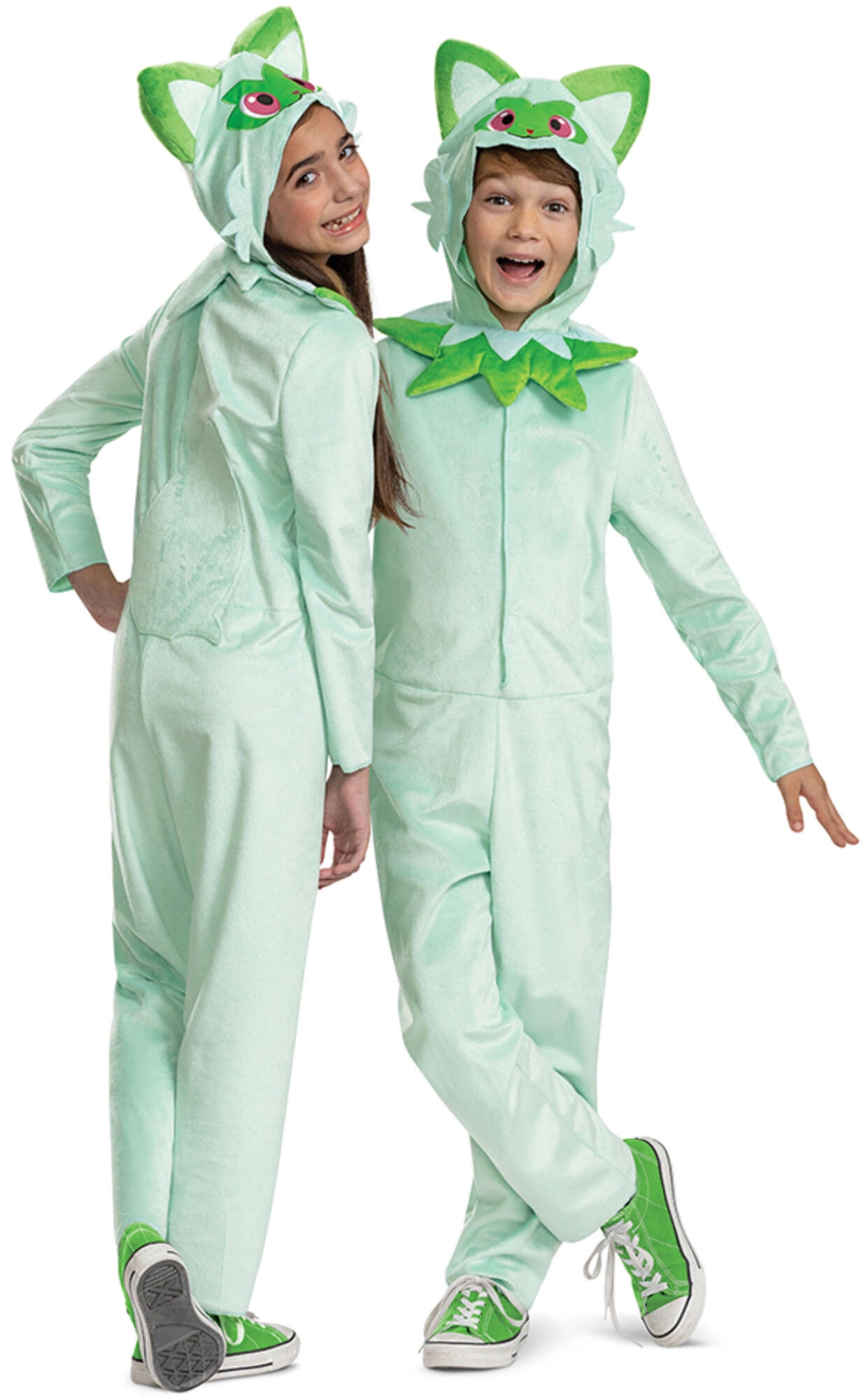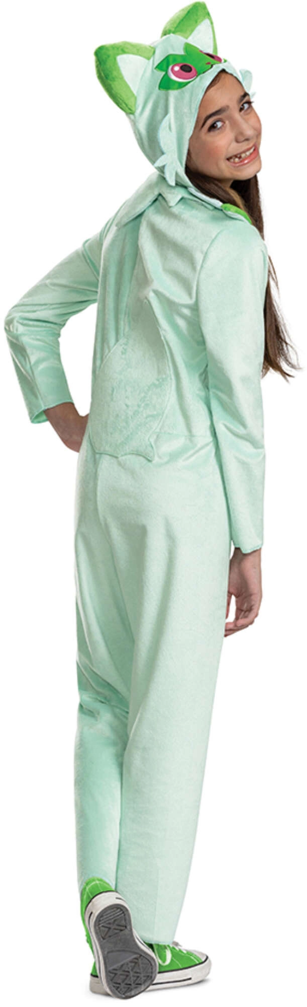 Intrați în lumea POKEMON cu costumul kigurumi confortabil Sprigatito. Salopeta verde deschis, cu guler din frunze și glugă cu ochi și urechi, oferă look-ul complet al personajului îndrăgit. Datorită fermoarului frontal, se îmbracă și se dezbracă ușor și este grozav pentru jocuri, petreceri și carnavalul școlar.