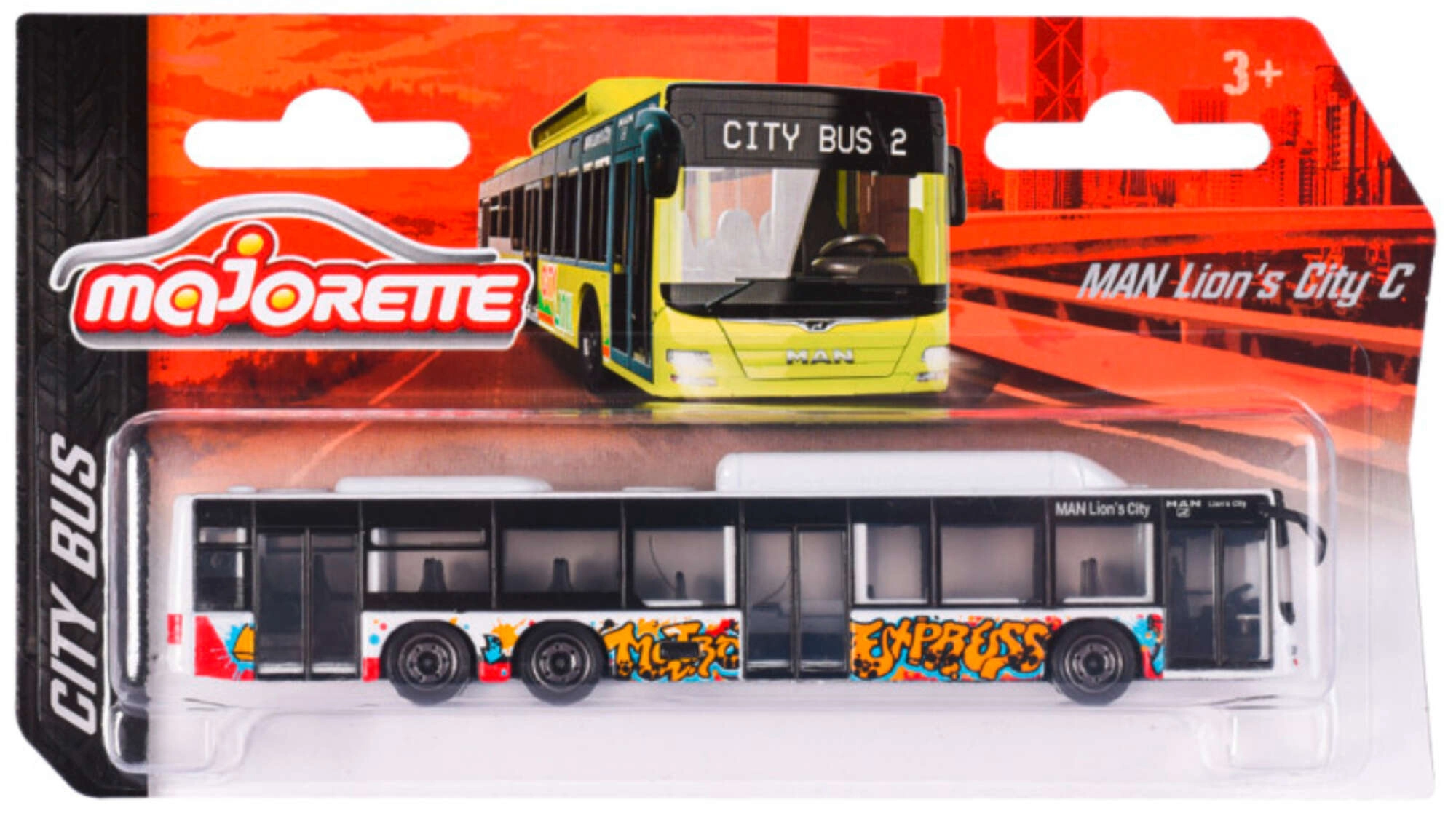 Model realist al autobuzului urban MAN Lion's City C de la Majorette îi va încânta pe micii și marii pasionați de transport. Construcție metalică cu detalii din plastic, roți mobile și design alb atrăgător cu inscripția „metro express” asigură atât durabilitate, cât și distracție la joacă. Ideal pentru copii de la 3 ani și ca piesă de colecție.