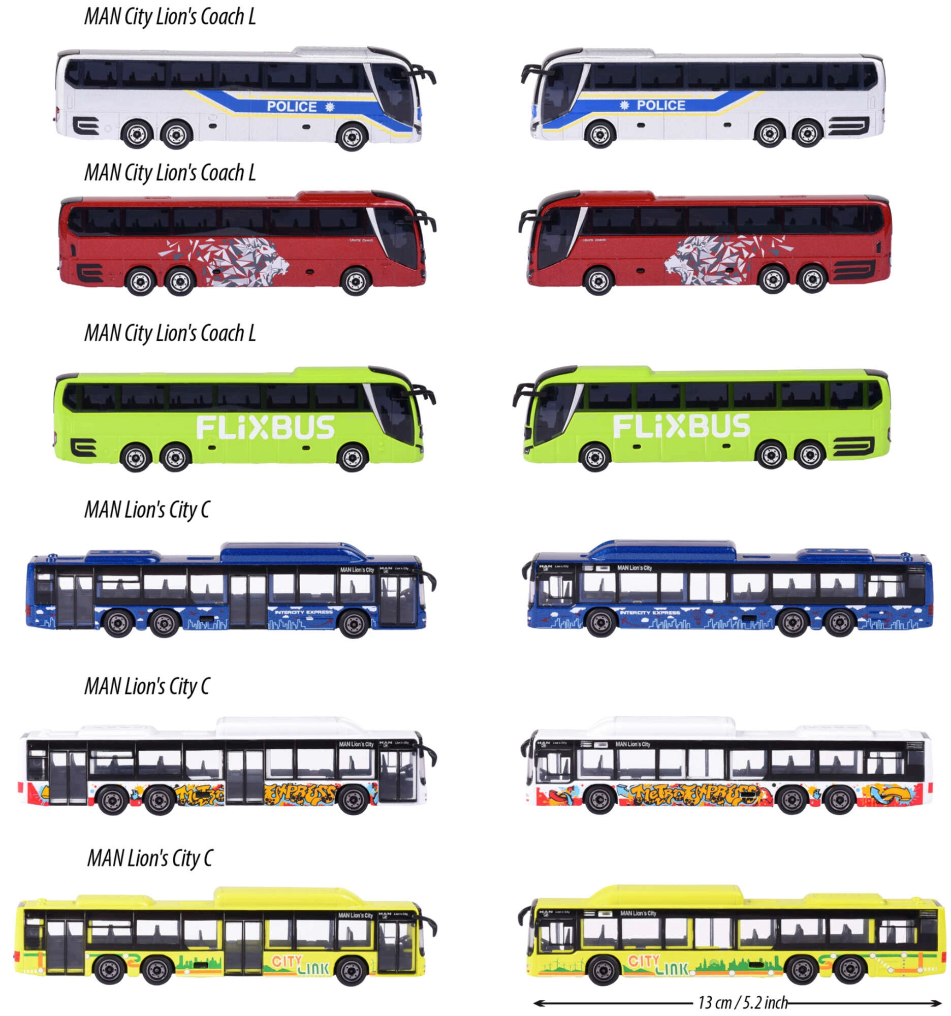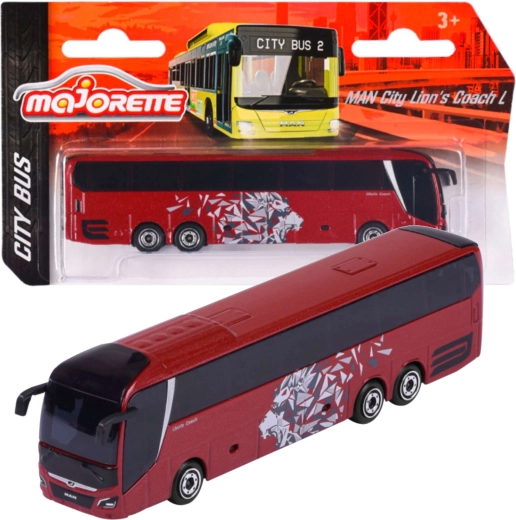 Model realist al autobuzului urban MAN Lion's City C de la Majorette, care îi va încânta pe micii și marii pasionați ai transportului. Construcție metalică cu detalii din plastic, roți liber rotative pentru rulare lină pe suprafețe plane și un design roșu atractiv cu motiv leu alb-gri, făcându-l o jucărie grozavă și o piesă de colecție.