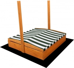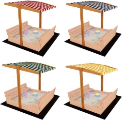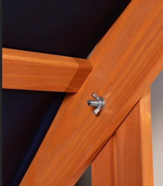 Copertina este proiectată pentru utilizare universală cu majoritatea nisiparelor disponibile comercial de 120 × 120 cm. Stâlpii solizi din lemn și pânza rezistentă creează un spațiu sigur și confortabil pentru joaca copiilor, în timp ce înălțimea reglabilă permite să reglați ușor umbra pe parcursul zilei.