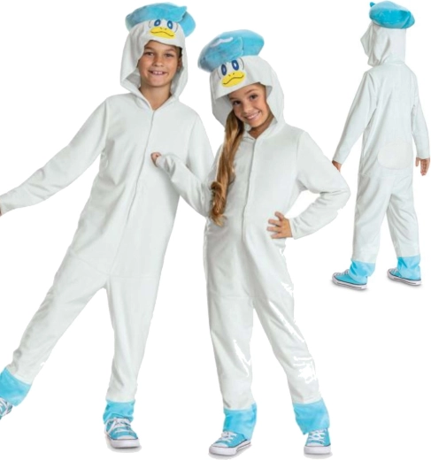Acest costum licențiat pentru copii cu vârsta de 7–8 ani (înălțime 127–136 cm) este realizat din 100% poliester plăcut, care încălzește și este catifelat la atingere. Gluga cu fața drăgălașă a lui Quaxly și detalii albastre oferă costumului un aspect autentic. Datorită fermoarului frontal, se îmbracă și se dezbracă ușor.