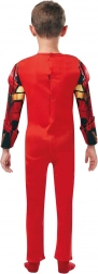 Acest costum oficial licențiat, inspirat din universul MARVEL, va încânta toți fanii supereroilor. Combinezonul integral în culori roșu–auriu, cu imprimeu realist al panourilor de armură și reactor arc proeminent pe piept, oferă un aspect autentic.