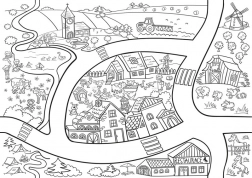 Colorează detaliile căsuțelor, grădinilor și drumurilor și dezvoltă imaginația și motricitatea fină. Dacă alegi toate cele șase tipuri de planșe din această serie, le poți uni cu ușurință într-un singur tablou de mari dimensiuni, care se continuă cu motivul drumului – o decorațiune grozavă pentru camera copilului sau sala de clasă.