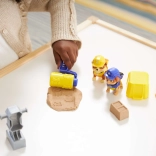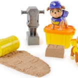 Intrați în lumea construcțiilor alături de simpaticul buldog Rubble și partenera sa Mix. Setul colorat cu nisip kinetic oferă copiilor un „șantier” realist, unde pot crea cărări, cărămizi și alte construcții cu ajutorul ruloului cu urme de lăbuțe și al instrumentului de tasare. Totul este adaptat pentru mâinile mici ale copiilor și pentru joacă sigură.