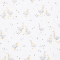 Setul include un pernuț 60 × 40 cm și o pilotă 90 × 120 cm cu un model liniștitor de găscuțe. Materialele sunt cu culori rezistente, fără substanțe nocive și nu pătează. Întreținerea este simplă – se spală la mașină. Pentru un aspect armonios al cameretei, pot fi achiziționate și alte produse din colecția Găscuțe.