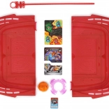 Arena Bakugan Battle Zone ridică bătăliile voastre la un nivel superior. Datorită construcției bine gândite, păstrează toate piesele la un loc, oferă stabilitate la aruncare și permite montare și demontare rapidă pentru joc acasă sau în deplasare. Cu Spinning Dragonoid exclusiv veți executa manevre de forță și tactice și vă veți surprinde adversarii cu atacuri dinamice.