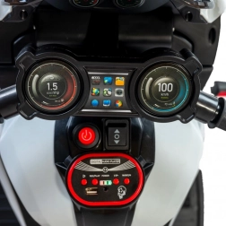 Motocicleta este echipată cu faruri LED pentru un aspect atrăgător și vizibilitate sporită, precum și cu panou multimedia cu muzică, cântece pentru copii și funcții educative. Datorită pornirii simple cu un singur buton și butonului pentru mers înainte/înapoi, se descurcă ușor și copiii mai mici.