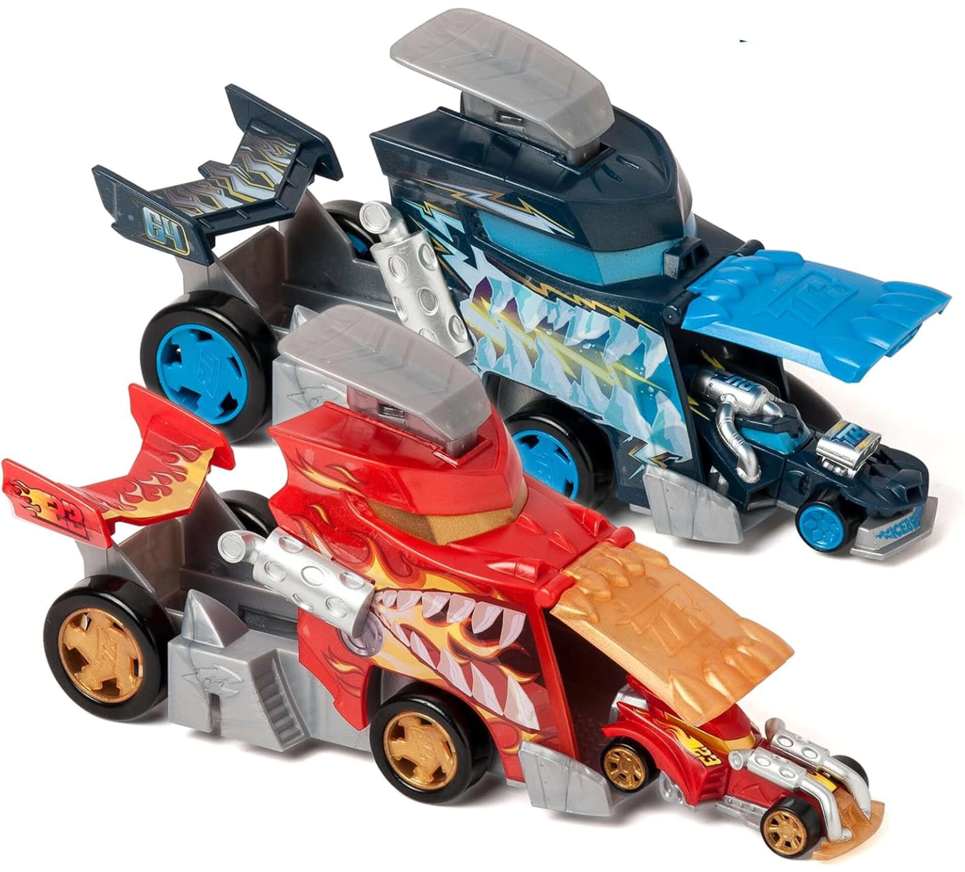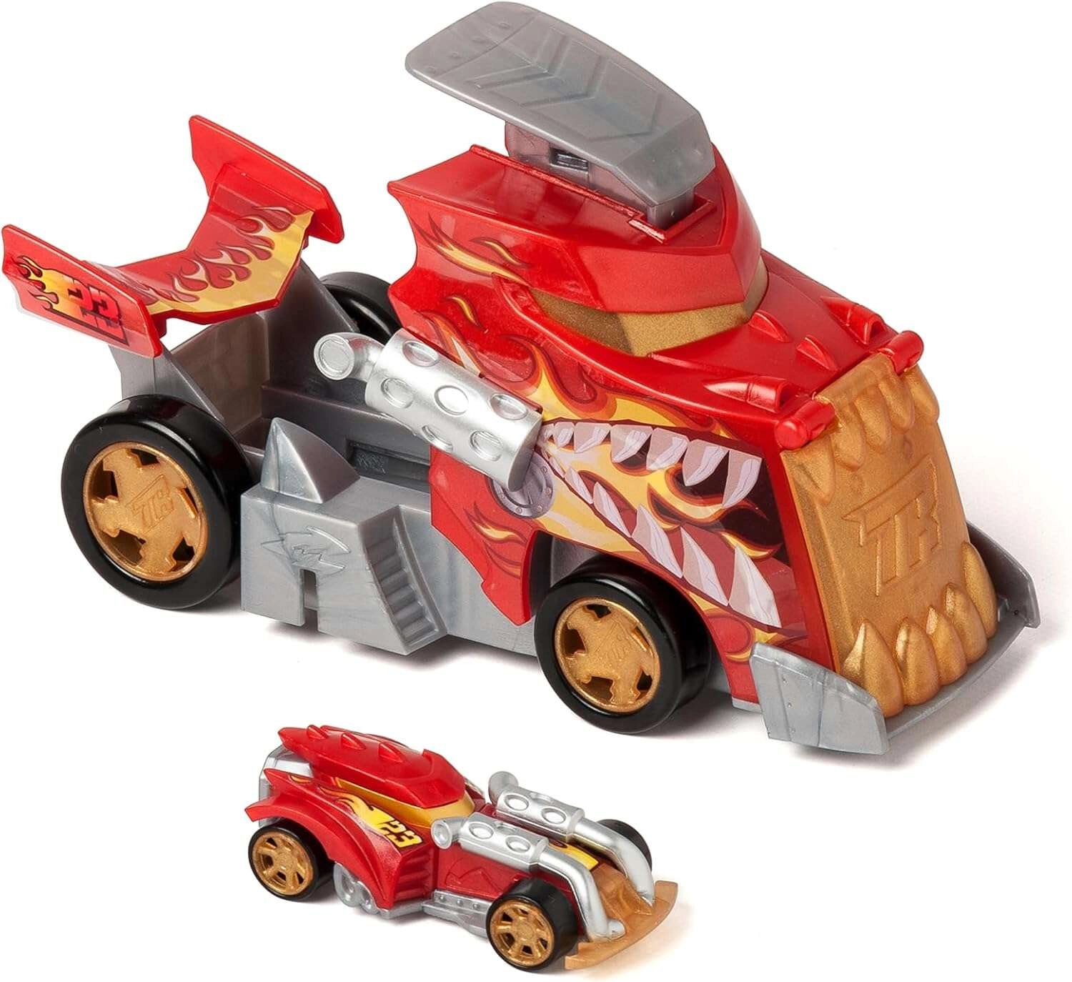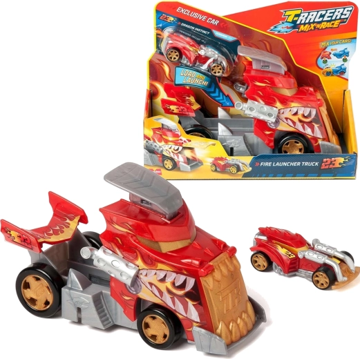 Setul T-Racers Mix ’N Race Fire Launcher Truck aduce copiilor curse dinamice și libertatea de a crea. Camionul în stil dragon îți transportă mașinuțele și, datorită rampei de lansare integrate, le trimite înainte cu viteză fulgerătoare. Include și un autoturism de curse exclusiv, ale cărui piese pot fi combinate cu alte modele din seria Mix ’N Race.
