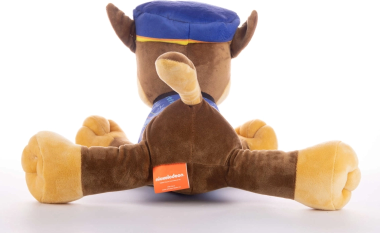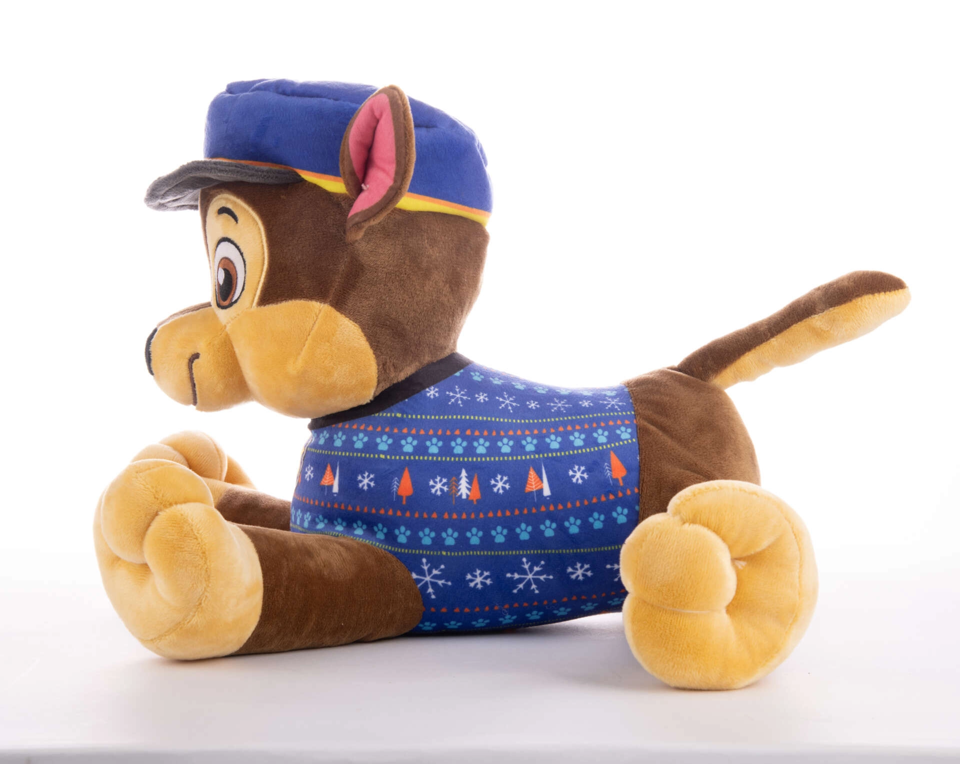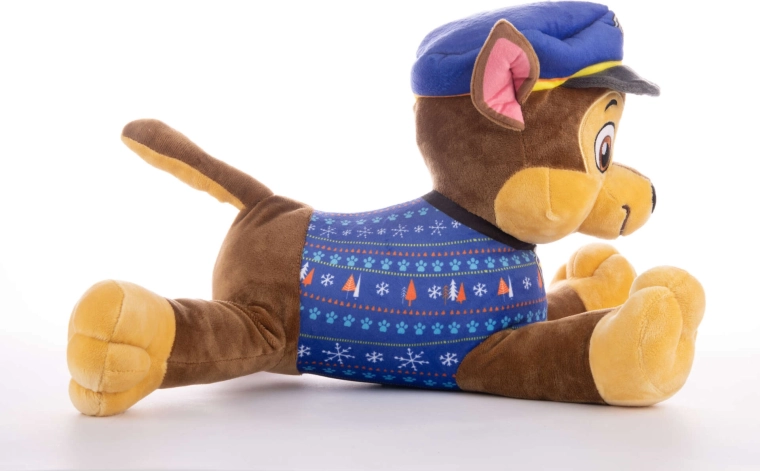 Cățelul polițist din pluș Chase este fidel inspirat de serialul Patrula Cățelușilor. Datorită ochilor mari brodați, căciulii polițienești albastre și puloverului cu fulgi de zăpadă și brazi, are un aspect extrem de autentic. Poziția culcată cu lăbuțele întinse îl face partenerul ideal pentru îmbrățișat, somn și joacă.