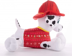 Puloverul roșu cu motive de iarnă și casca de pompier evidențiază caracterul lui MARSHALL și transformă jucăria de pluș într-o frumoasă decorațiune.