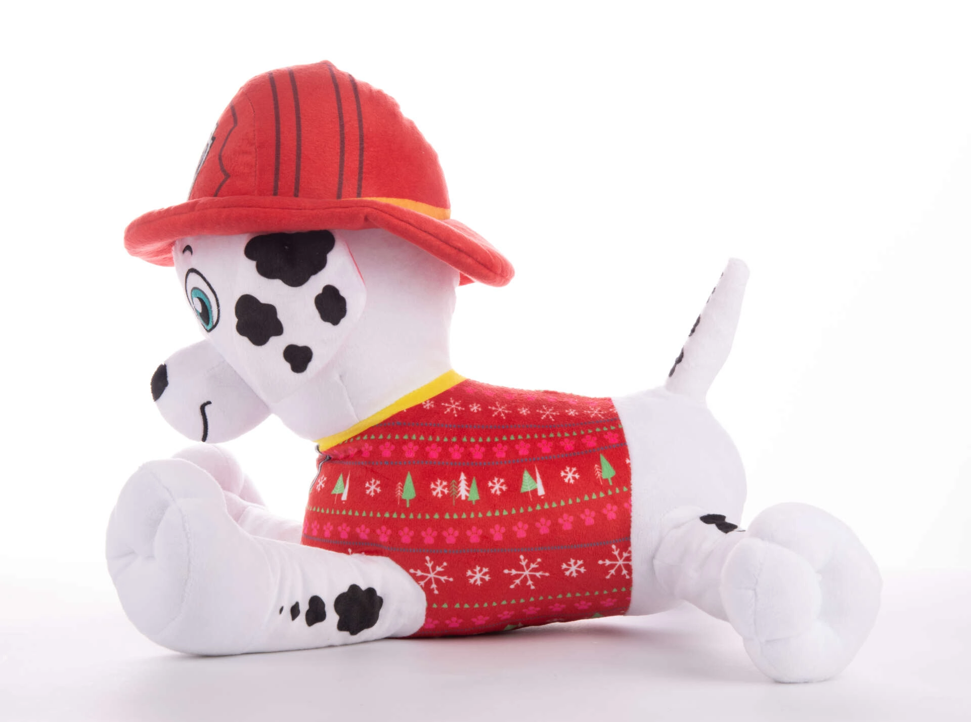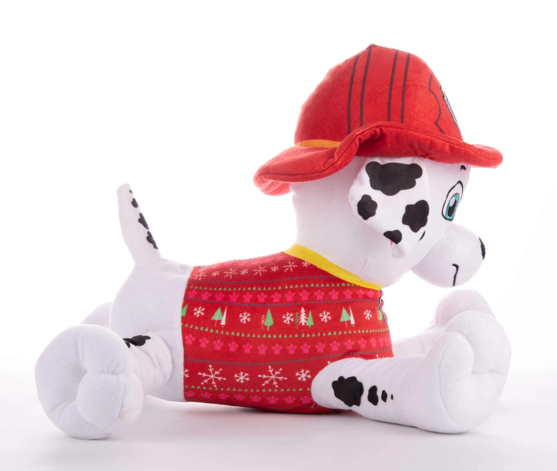 Designul este completat de puloverul roșu festiv cu motive de iarnă și insignă, care subliniază rolul eroic al lui Marshall. Jucăria de pluș este realizată din material fin, plăcut la atingere și, datorită lăbuțelor mari, stă stabil culcat.