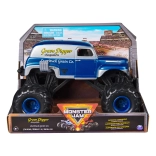 Caroserie detaliată albastru‑argintie, șasiu înălțat și aspect iconic pentru o experiență Monster Jam cât mai fidelă.