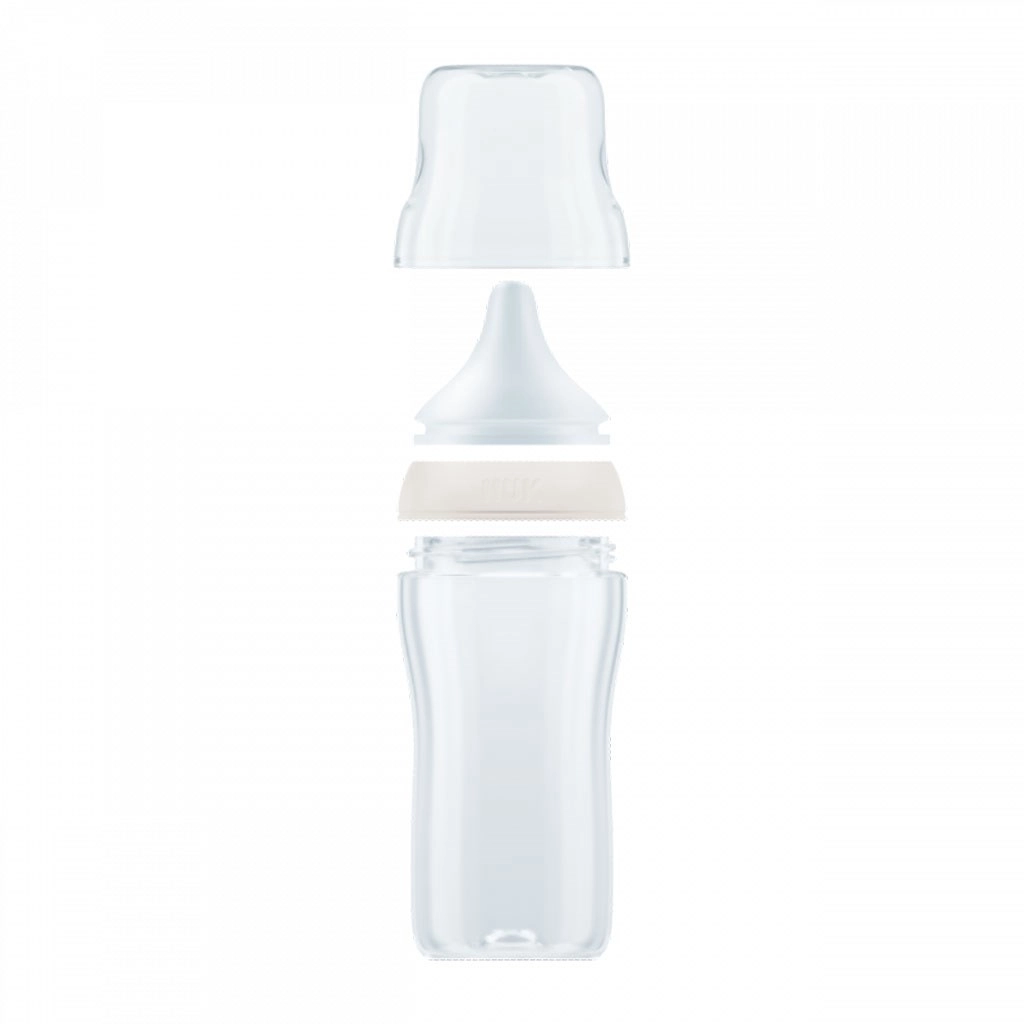 NUK Perfect Match MICKEY este conceput pentru hrănire confortabilă și sigură. Forma specială a tetinei, inspirată de mamelonul în timpul alăptării, oferă spațiu suficient pentru mișcări naturale ale limbii și maxilarului. Sistemul Anti Colic Air integrat asigură un flux lin fără bule de aer pentru o băutură liniștită.