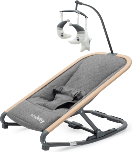 Șezlongul balansoar SNUGGLE NEW BABY, în eleganta culoare gri, oferă bebelușului un loc confortabil pentru relaxare și distracție. Căptușeala moale și poziția ușor reglabilă a spătarului asigură susținerea corectă și confortul în diferite momente ale zilei.
