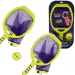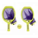 Două rachete în culoare galben neon cu plasă mov și o minge asortată creează un set vizibil și expresiv pentru momente active în familie, dueluri amicale și antrenarea agilității și coordonării. Distracție fără pauze: plasa te ajută să ridici ușor mingea de pe jos și să continui jocul.