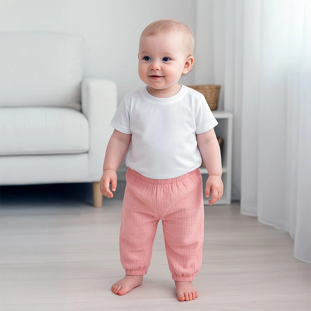 - Lejeri și rezistenți pantaloni din muselină, potriviți pentru activități zilnice.