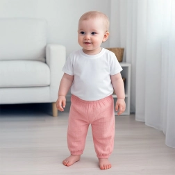 Muselina se numără printre cele mai pure și mai fine țesături, este excelent respirabilă și ușor de întreținut. Materialul suportă fără probleme spălări repetate, fiind perfect pentru utilizare zilnică la grădiniță și acasă.