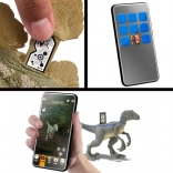 Eticheta glisantă de pe spate se scanează în aplicația JURASSIC WORLD pentru a debloca conținut digital suplimentar.